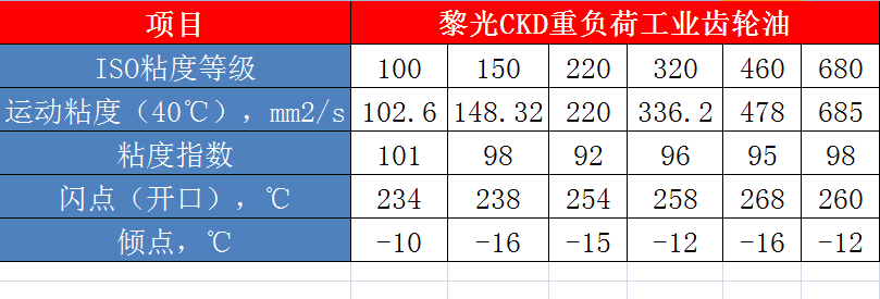 黎光CKD重负荷工业齿轮油,采用深度精制的高粘度指数基础油加入多种优质添加剂复配而成,具有优异的极压抗磨性能和承载能力,能有效的减小齿面的磨损,延长齿轮使用