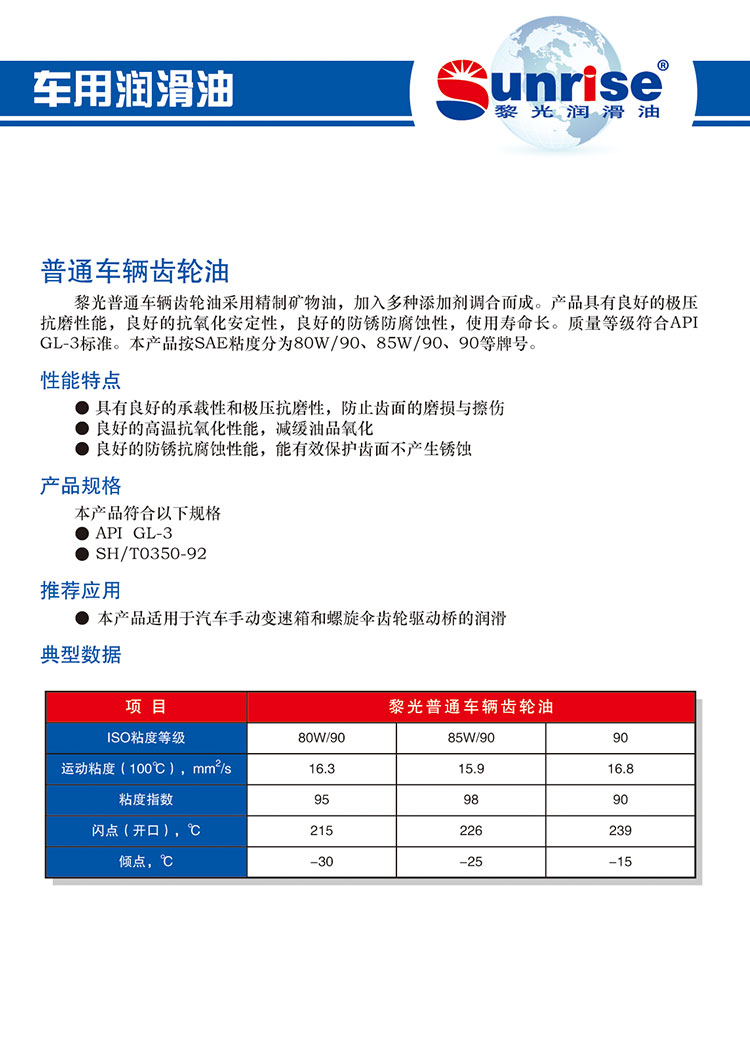 普通车辆齿轮油